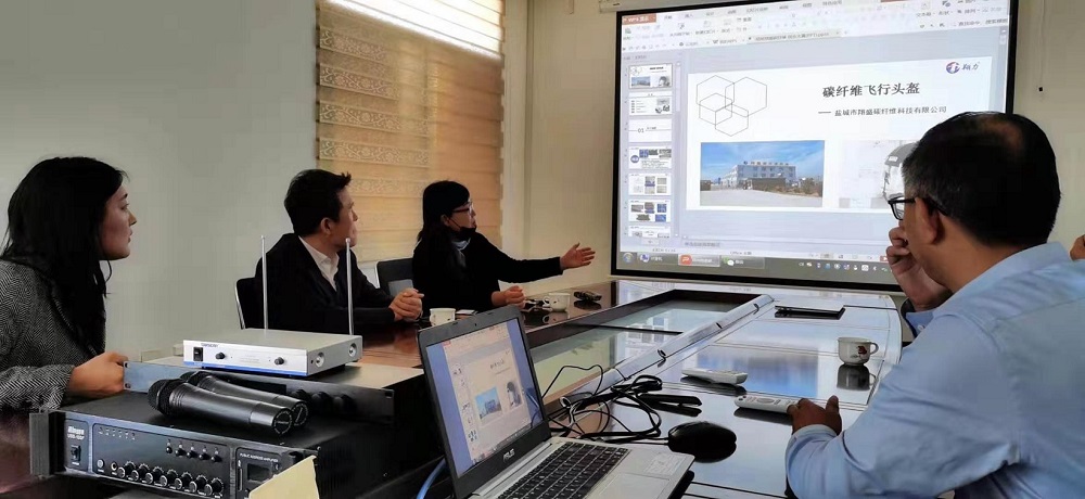 Mr. Hu introduced the company's carbon fiber flying helmet to the guests.